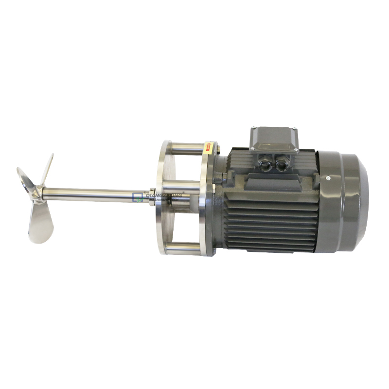 推进式搅拌器结构简单,制造方便,剪切作用不大,循环性能好,属于循环型搅拌器。搅拌机由电机、机械密封、堵漏装置、搅拌轴、搅拌器等组成,适用于粘度低、流量大的场合。它利用较小的搅拌功率,通过高速转动的桨叶能获得较好的搅拌效果,主要用于液-液体系混合、温度均一,在低浓度固-液体系中防止淤泥沉降等。